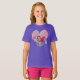 Starfire tira el suelo con fuerza, yuxtapuesto contra una gran forma cardíaca detrás de ella, llena de íconos rosados y púrpura bonito que representan Starfire. Hermosas nubes brillantes, osos de peluche superhéroes, flores, su querida mascota Silkie, y su diario se muestran en el corazón. ¡Trae tus titanes adolescentes! Gráfica de Starfire en una camiseta, bolso de tote o cualquiera de tus productos favoritos de Zazzle en la tienda.
