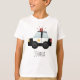 Esta linda y moderna camiseta para niños muestra un auto de policía de emergencia con una sirena, con una placa de policía dorada en la parte de atrás, y un lugar para que agregues el nombre de tu hijo. ¡Perfecto para cualquier niño que sueñe con ser policía!