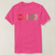 El color es muy bonito al natural, como la foto. El tejido es suave y de buena calidad. Sin defectos en el tintado, ni hilos sueltos o descosidos. Bien la impresión. Los bordes de las letras y el dibujo son nítidos, y el color contrasta muy bien con el de la camiseta.