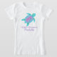 Tortuga de mar linda de la natación con la camiseta caprichosa del arte de la acuarela de la cáscara del corazón. El personalizar con su propio nombre y lema, lee actualmente al pequeño nadador Isabel. Ideal para animar a niños a aprender nadar o mejorar la natación. Arte diseñado y de la acuarela de Sarah Trett.