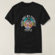 El color es muy bonito al natural, como la foto. El tejido es suave y de buena calidad. Sin defectos en el tintado, ni hilos sueltos o descosidos. Bien la impresión. Los bordes de las letras y el dibujo son nítidos, y el color contrasta muy bien con el de la camiseta.