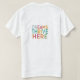 El diseño de la camiseta muestra el inspirador mensaje "Dreams Thrive Here" en un vibrante esquema multicolor. Cada palabra es un color diferente, creando un sentido de energía y posibilidad. El trasfondo es sencillo, permitiendo que el texto multicolor sea el punto central y enfatizando la idea de que este lugar fomenta el crecimiento y el éxito de los sueños.