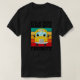 El color es muy bonito al natural, como la foto. El tejido es suave y de buena calidad. Sin defectos en el tintado, ni hilos sueltos o descosidos. Bien la impresión. Los bordes de las letras y el dibujo son nítidos, y el color contrasta muy bien con el de la camiseta.
