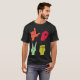 El color es muy bonito al natural, como la foto. El tejido es suave y de buena calidad. Sin defectos en el tintado, ni hilos sueltos o descosidos. Bien la impresión. Los bordes de las letras y el dibujo son nítidos, y el color contrasta muy bien con el de la camiseta.