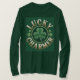 This is a forest green women's t-shirt. The t-shirt is a Basic Long Sleeve T-Shirt. The t-shirt features a Lucky Charmer Shamrock design on the front and back. The t-shirt is made of 100% cotton. This t-shirt could be worn for St. Patrick's Day and other occasions.