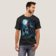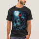 On a dark night illuminated by a bright full moon, a terrifying skeleton emerges from the ground of a cemetery. Its eyes glow an intense red, and its sharp claws are extended as if ready to attack. In the background, several gravestones are visible, adding a sinister touch to the scene. The atmosphere is filled with mystery and terror, making the image both fascinating and frightening.