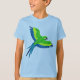 Tee en un ilustracion de un macaw/loro verde esmeralda y azul cobalto en vuelo
