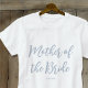 Haz que Mamá se sienta especial con una camiseta de boda personalizada. Un diseño elegante con la frase "Madre de la Novia" en una fuente de escritura elegante, y personalizado con un nombre, fecha de boda, ubicación o cualquier texto que elijas. Perfecto para fiestas de despedida de soltera, duchas de novia o un divertido fin de semana de boda: es un regalo considerado y elegante que tu Mamá amará. Colores de plantilla impresa: azul polvoriento sobre blanco.