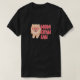 El color es muy bonito al natural, como la foto. El tejido es suave y de buena calidad. Sin defectos en el tintado, ni hilos sueltos o descosidos. Bien la impresión. Los bordes de las letras y el dibujo son nítidos, y el color contrasta muy bien con el de la camiseta.