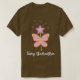 El color es muy bonito al natural, como la foto. El tejido es suave y de buena calidad. Sin defectos en el tintado, ni hilos sueltos o descosidos. Bien la impresión. Los bordes de las letras y el dibujo son nítidos, y el color contrasta muy bien con el de la camiseta.