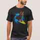 El color es muy bonito al natural, como la foto. El tejido es suave y de buena calidad. Sin defectos en el tintado, ni hilos sueltos o descosidos. Bien la impresión. Los bordes de las letras y el dibujo son nítidos, y el color contrasta muy bien con el de la camiseta.
