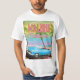 Malibu California poster de viajes de vintage de un clásico auto viejo cerca de una hermosa playa.