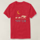 El color es muy bonito al natural, como la foto. El tejido es suave y de buena calidad. Sin defectos en el tintado, ni hilos sueltos o descosidos. Bien la impresión. Los bordes de las letras y el dibujo son nítidos, y el color contrasta muy bien con el de la camiseta.