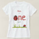 Cute y Girly Black Red Watercolor Ladybug deletreando la palabra uno, diseño para tu primer cumpleaños de tu chica! Personalizable de texto Mamá de un año de edad!