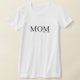 Sencilla camiseta personalizada de mamá clásica. Celebra la maternidad con este diseño minimalista que incluye la palabra "MOM" en un clásico tipo de letra sif al otro lado del frente para un aspecto atemporal y elegante. En la parte inferior derecha, un pequeño "est. year", estilo máquina de escribir, agrega un toque personal simple —perfecto para una futura madre, una nueva madre, o para celebrar a la mamá en cualquier momento. Ideal para el Día de la Madre o para el uso diario, esta camisa limpia y moderna ofrece una manera clásica de honrar a la madre con estilo.