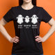 Celebrar Halloween de una manera divertida y adorable con esta camiseta de mujer que presenta a una familia fantasma de tres miembros. El diseño muestra a papá, mamá y un pequeño fantasma de la hija para indicar claramente al niño. Cada fantasma tiene su nombre mostrado debajo, lo que lo hace una elección personalizable y encantadora para las madres que quieren coincidir con toda la familia este Halloween.
