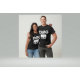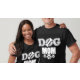 Celebra la alegría de ser una orgullosa mamá perro con este diseño audaz y divertido de camiseta a juego. El gráfico presenta la frase “MAMÁ PERRO” en letras blancas crujientes, con un giro encantador: la “O” en PERRO se reemplaza por un ícono de hueso adorable, y dos huellas de patas se sientan dulcemente debajo de la palabra MAMÁ. La paleta de alto contraste en negro y blanco hace que el diseño resalte, dándole una apariencia limpia y moderna que se destaca en fotos y en persona.