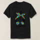 El color es muy bonito al natural, como la foto. El tejido es suave y de buena calidad. Sin defectos en el tintado, ni hilos sueltos o descosidos. Bien la impresión. Los bordes de las letras y el dibujo son nítidos, y el color contrasta muy bien con el de la camiseta.