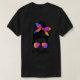 El color es muy bonito al natural, como la foto. El tejido es suave y de buena calidad. Sin defectos en el tintado, ni hilos sueltos o descosidos. Bien la impresión. Los bordes de las letras y el dibujo son nítidos, y el color contrasta muy bien con el de la camiseta.