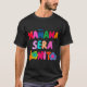 El color es muy bonito al natural, como la foto. El tejido es suave y de buena calidad. Sin defectos en el tintado, ni hilos sueltos o descosidos. Bien la impresión. Los bordes de las letras y el dibujo son nítidos, y el color contrasta muy bien con el de la camiseta.