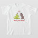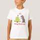 El navidad divertido adaptable embroma la camisa con un ilustracion de un dinosaurio lindo del dibujo animado que mira el árbol de navidad y que se pregunta porqué hay un corazón encima de él.
