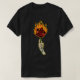 Camiseta Mano De Esqueleto Con Flor De Rosa En El Fuego