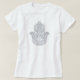Mano de la camiseta de Hamsa. © Tees & Sweats at Zazzle. Esta tee tiene un diseño de mano de Hamsa en línea de arte.