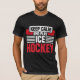 Camiseta temática de hockey con texto de negro, blanco y rojo que dice ¡Mantengan la calma y jueguen al hockey sobre hielo!