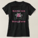 ¡Esta es una Inspiradora camiseta de mujeres "una especie" única! Cuenta con la Cita de Supresión..."MANTENER CALMA TENGA FE"... y Hermosas flores rosas, púrpura y blancas en el frente y una flecha hermosa con flores y plumas en la parte posterior. Diseño original de arte gráfico por el artista Kerry Miller.
