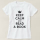 Mantén la calma y lee una camiseta del libro con una corona minimalista. Grandes camisetas para los que les encanta leer. *Tenga en cuenta que la marca de agua Zazzle que aparece en la vista previa del zoom NO aparecerá en el producto impreso final. © Tipo de novela