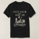 Esta camiseta es perfecta para los amantes del senderismo. El diseño incluye las palabras "Mantén la calma y la caminata", y "Aventura espera" con una silueta de excursionista, montaña, árboles, sol, pájaro y hierba entre las palabras. Esto hará un gran cumpleaños, Navidades o regalo del Día del Padre.