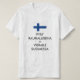 Bandera de Finlandia en una camiseta blanca con un texto en finés: pysy rauhallisena ja vieraile Suomessa, que puede traducirse a: mantente tranquilo y visita Finlandia. Puedes personalizar esta camiseta para darle una apariencia única.