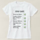 Manténgase seguro con las camisetas de Distancia Social con marcas verdes para recordarte a ti mismo y a los demás. Tiene las palabras "lavarse las manos", "tos o estornudar en un tejido o manga", "desinfectar superficies", "quedarse en casa cuando esté enfermo", "practicar distanciamiento social".