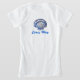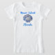 Marco Island, Florida seashell t-shirt. The pretty scallop shell is a mosaic design. The dominant colors are turquoise, aqua, and navy blue. Marco Island Florida is above and below the shell, in a vibrant flowing script. , under the same shell design, On the back there is a template for child's name. Your child will love wearing this personalized fun beach vacation shirt.