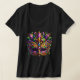 This women's V-neck t-shirt is shown in black with a fancy Mardi Gras mask art print.