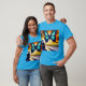 El color es muy bonito al natural, como la foto. El tejido es suave y de buena calidad. Sin defectos en el tintado, ni hilos sueltos o descosidos. Bien la impresión. Los bordes de las letras y el dibujo son nítidos, y el color contrasta muy bien con el de la camiseta.