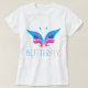 Una silueta de una mariposa pintada de color rosa y azul y un texto en color rosa y azul BUTTERFLY debajo de la imagen. ¡Personalizable. Puede cambiar o eliminar dos partes del texto. Para cambiar el tipo de letra o reubicar la imagen y también el texto simplemente usar el botón PERSONALIZAR, elija otro tipo de letra del menú desplegable a la derecha del botón "Editar texto". No olvides cambiar el estilo, el color, el tamaño y el género de la ropa. ¡Diviértete y sé feliz!