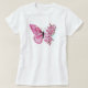 Arreglo floral de mariposa rosa con flores japonesas de cerezo rosadas sobre fondo blanco.