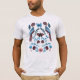 Hermosa escena de arte folclórico escandinavo en una camisa unisex súper cómoda y suave. En una colorida estética nórdica o escandalosa, el diseño es sencillo, feliz y nostálgico. Con hermosos pavos reales azules y morados y mariposas, rodeados de flores de colores. El color de este diseño se opone al gris claro de la camisa.