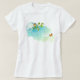 Un fondo abstracto con círculos y formas giratorias. El color es un suave color verdoso, turquesa y amarillo en tonos pastel claros. Un par de mariposas naranjas y amarillas rodean algunas delicadas flores con hojas verdes y ramas marrones. Tiene un aspecto de primavera fresco, delicioso y mágico.