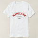 En esta camisa, el texto apenado en rojo dice MARYLAND en un arco leve, y el texto negro abajo dice estableció 1788.