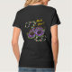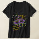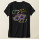No hace falta ser católico -ni siquiera en Nueva Orleans- para celebrar el Mardi Gras (alias). ¡¡Martes gordo" como el animal fiesta que eres!! Un diseño original divertido en esta camiseta negra muestra la imagen de cuerdas de cuentas moradas, verdes esmeraldas y doradas detrás de una máscara con piedras preciosas en los mismos tonos. El pie de foto amarillo mostaza se puede personalizar (por defecto: "Advertencia: Mis cuentas son más grandes de lo que parecen". Mantener, modificar o borrar la imagen y el texto en la parte posterior de la camisa.