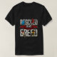 El color es muy bonito al natural, como la foto. El tejido es suave y de buena calidad. Sin defectos en el tintado, ni hilos sueltos o descosidos. Bien la impresión. Los bordes de las letras y el dibujo son nítidos, y el color contrasta muy bien con el de la camiseta.