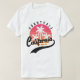 Camiseta blanca masculina de puesta de sol retro vintage con palmeras de Sunnyvale, California. Muestra cuánto amas Sunnyvale con este diseño tropical de puesta de sol y palmeras retro de verano. Este diseño de ciudades de California también está disponible para otras ciudades de origen en CA.
