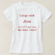 Una camisa de señoras con "¡Me acosté con Ares y todo lo que conseguí fue esta pésima camiseta!" en rojo en el frente. Ares era el antiguo dios griego de la guerra y las batallas, y como la mayoría de los dioses tendía a tener vuelos con varias mujeres.