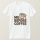 Clean vector illustration featuring a sleepy coffee cup character with droopy eyes, limp stick arms hanging at sides, and a subtle frown capturing morning grogginess. Bold "Me Before Coffee" text in sans-serif typography sits center stage, using warm browns, creamy tones, and coral accents for trendy Gen Z appeal. Minimal centered composition on transparent background—perfect for versatile print applications with relatable caffeine humor