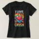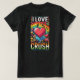 El diseño de la camiseta de "I Love My Crush" presenta un tema juguetón y romántico con letras atrevidas y vibrantes. La frase "I Love" está escrita en un gran tamaño, llamativo, con la palabra "Crush" en un estilo diferente, posiblemente con un símbolo del corazón o adornos juguetones. Los colores vivos como el rojo o el rosa para los elementos del corazón contrastan con el fondo, lo que lo convierte en un diseño divertido y juvenil. El conjunto es alegre, perfecto para expresar afecto con un toque de fantasía.