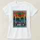 El diseño de la camiseta "I Like It" presenta tipografía atrevida y juguetona con las palabras "I Like It" en una fuente vibrante y llamativa. El texto va acompañado de un fondo alegre y colorido o de simples elementos gráficos como íconos para el pulgar o patrones abstractos que enfatizan positividad y entusiasmo. El diseño es minimalista pero expresivo, lo que lo hace perfecto para el desgaste casual, la difusión de buenas vibraciones y la adopción de una actitud divertida y desenfadada.