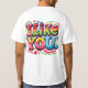 El diseño de la camiseta "I Like You" incluye una frase juguetona, dibujada a mano, en letras atrevidas y extravagantes. El texto es el punto focal, escrito en un tipo de letra informal y amigable con colores vibrantes, dándole una sensación divertida y accesible. Alrededor de las palabras, hay pequeños garabatos como corazones, estrellas o caras sonrientes para realzar el mensaje positivo y de buen corazón. El diseño se siente fresco y joven, perfecto para difundir positividad y buenas vibraciones.
