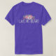 El color es muy bonito al natural, como la foto. El tejido es suave y de buena calidad. Sin defectos en el tintado, ni hilos sueltos o descosidos. Bien la impresión. Los bordes de las letras y el dibujo son nítidos, y el color contrasta muy bien con el de la camiseta.
